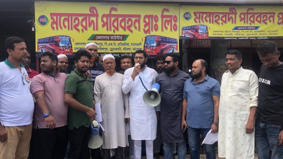 নরসিংদী আন্তঃজেলা সড়ক পরিবহন মালিক সমিতির সভাপতি সারোয়ার হোসেন মৃধা বলেন, ফ্যাসিস্ট আওয়ামী সরকারের সড়ক পরিবহন কালো আইন-২০১৮ সংশোধনসহ সড়ক পরিবহনের সমস্যা নিরসনে দ্রুত ব্যবস্থা গ্রহণ করতে হবে। আর তা না হলে আগামী ১২ আগস্ট সকাল ৬টা থেকে ১৫ আগস্ট পর্যন্ত সব পরিবহন বন্ধ থাকবে এবং শান্তিপূর্ণভাবে ধর্মঘট পালন করা হবে।