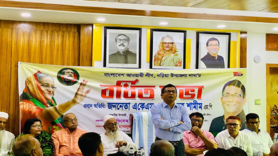 নড়িয়া উপজেলা আওয়ামী লীগের সভাপতি বীর মুক্তিযোদ্ধা ফজলুল হক মালের সভাপতিত্বে সভায় বক্তব্য রাখেন, জেলা আওয়ামী লীগের সহসভাপতি ওহাব বেপারী, আওয়ামী লীগের কেন্দ্রীয় বিজ্ঞান ও প্রযুক্তিবিষয়ক উপকমিটির সদস্য জহির সিকদার, নড়িয়া পৌরসভার মেয়র আবুল কালাম আজাদ, উপজেলা আওয়ামী লীগের সাধারণ সম্পাদক হাসানুজ্জামান খোকন, উপজেলা ভাইস চেয়ারম্যান জাকির বেপারী প্রমুখ।