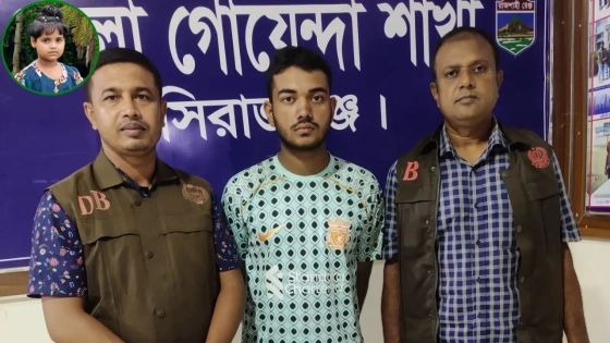 সিরাজগঞ্জের রায়গঞ্জে চাঞ্চল্যকর সাত বছরের শিশু ছোঁয়া মনি হত্যার রহস্য উদ্ঘাটন করেছে গোয়েন্দা পুলিশ (ডিবি)। এ ঘটনা মো. মনিরুল ইসলাম জিহাদ নামে ভিকটিমের ফুপাতো ভাইকে গ্রেপ্তার করা হয়েছে।