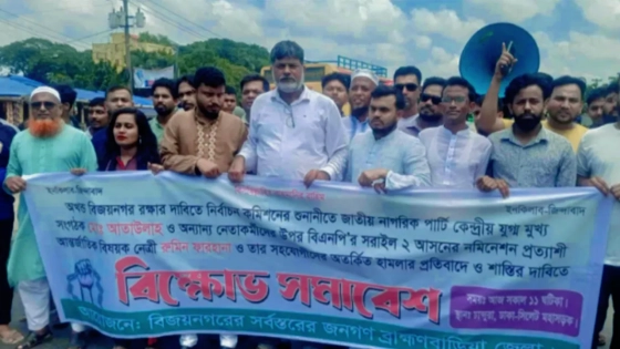 বিএনপির সহআন্তর্জাতিকবিষয়ক সম্পাদক ব্যারিস্টার রুমিন ফারহানাকে গ্রেপ্তার ও দৃষ্টান্তমূলক শাস্তির দাবিতে ব্রাহ্মণবাড়িয়ার বিজয়নগরে বিক্ষোভ ও সড়ক অবরোধ কর্মসূচি পালন করা হয়েছে। জাতীয় নাগরিক পার্টি (এনসিপি) নেতাদের ওপর ব্রাহ্মণবাড়িয়া-২ (সরাইল-আশুগঞ্জ) আসনের মনোনয়নপ্রত্যাশী রুমিন ফারহানার সমর্থকদের হামলার প্রতিবাদ জানানো হয়।