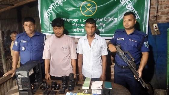 পঞ্চগড়ের দেবীগঞ্জে যৌথ বাহিনীর অভিযানে অনলাইন জুয়া চক্রের দুই সদস্যকে আটক করা হয়েছে। এ সময় তাদের কাছ থেকে নগদ টাকা, মোবাইল ফোনসহ বিভিন্ন সরঞ্জাম জব্দ করা হয়।