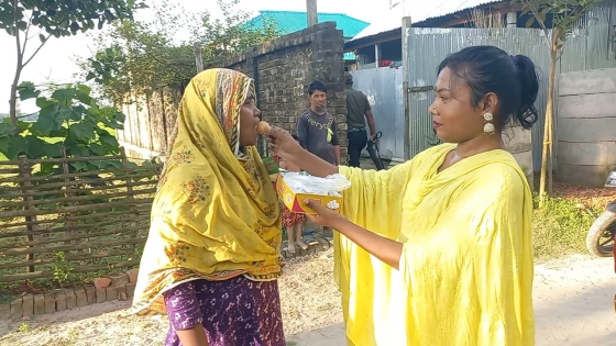 লালমনিরহাটে এলাকাবাসীর মাঝে মিষ্টি বিতরণ করেছে হিজড়া জনগোষ্ঠী।