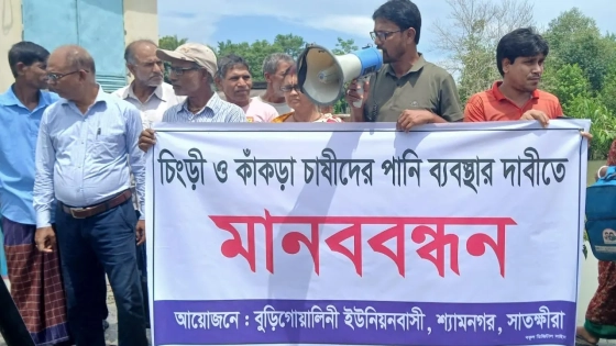 বক্তারা বলেন, উপকূলীয় মানুষের প্রধান জীবিকা হচ্ছে চিংড়ি ও কাঁকড়া চাষ। এ খাত বাঁচাতে সরকারকে জরুরি ভিত্তিতে পদক্ষেপ নিতে হবে। অবিলম্বে নদীর পানি চলাচল স্বাভাবিক করার দাবি জানান তারা।
