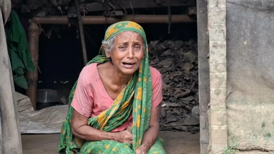 জানতে চাইলে সখিনা বেগম কান্নাজড়িত কণ্ঠে বলেন, ‘আজকে তিন বছর ধইরা আমারে টাহা (টাকা) দেয় না, এহন কী কইয়াম? আমি চাইতো তারার (সতীনের সন্তান) কাছে; কিন্তু তারা কই টাকা আইছে না, আইলে তো আইবোই আমার হাতো (হাতে) এডাই কই আমারে।’