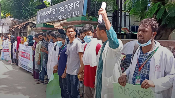 সাতক্ষীরা সদর হাসপাতাল ইন্টার্ন ও ডিপ্লোমা চিকিৎসকদের আয়োজন অনুষ্ঠিত ছাত্র ধর্মঘটে অংশগ্রহণকারী শিক্ষার্থীরা বলেন, আমাদের চার দফা দাবি মানতে হবে। ইন্টার্নশিপ বহালসহ সংগতিপূর্ণ কোর্স বাতিল করতে হবে। বাংলাদেশ অ্যালাইড হেলথ বোর্ড বাতিল করে মেডিকেল এডুকেশন বোর্ড অব বাংলাদেশ নামে স্বতন্ত্র বোর্ড করতে হবে। কর্মসংস্থান সৃজন ও দ্রুত নিয়োগ দিতে হবে। বঙ্গবন্ধুর পঞ্চবার্ষিকী বাস্তবায়ন, ইন্টার্নশিপ বহাল অসংগতিপূর্ণ কোর্স কারিকুলাম সংশোধন করতে হবে।