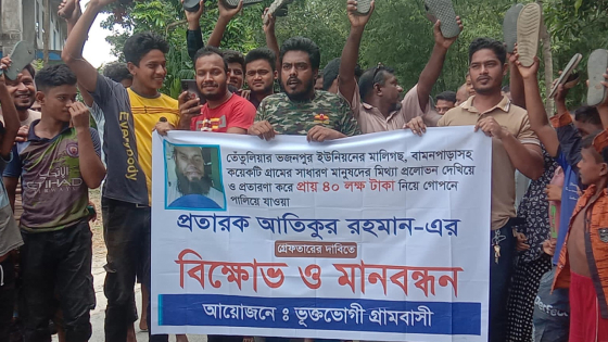 পঞ্চগড়ের তেঁতুলিয়ায় ভজনপুর ইউনিয়নের মালিগাছ এলাকার ২০টি পরিবারের কাছ থেকে ৪০ লাখ টাকা নিয়ে পালিয়েছেন আতিকুর রহমান নামের এক ইমাম। এ ঘটনায় ওই গ্রামের ভুক্তভোগী সাধারণ মানুষ প্রতারক ইমামকে গ্রেপ্তার ও বিচারের দাবিতে মানববন্ধন করেছে। তিনি এলাকার মানুষের সঙ্গে নিবিরভাবে মিশে সম্পর্ক তৈরি করে মেসার্স বিসমিল্লাহ ট্রেডার্স-নামে একটি ঠিকাদারি প্রতিষ্ঠান পরিচালনার কথা বলে গোপনে গোপনে মানুষের কাছ থেকে এ টাকা হাতিয়ে নেন। এ ছাড়া সুদের মাধ্যমে অতিরিক্ত টাকা দেওয়ার প্রলোভন দেখিয়ে দেড় বছরে গ্রামের বিভিন্নজনের কাছে ধারের নামে প্রায় ৪০ লাখ টাকা হাতিয়ে নিয়েছেন।