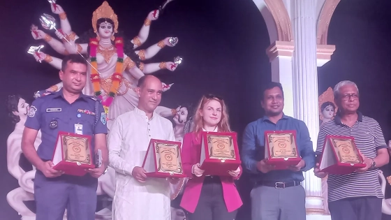 দেব বাড়ি পূজামণ্ডপের সাধারণ সম্পাদক জয়ন্ত কুমার দেবের সভাপতিত্বে এ সময় ছিলেন সুইডেন প্রবাসী অর্থনীতিবিদ শহীদুজ্জামান কাকন এবং চট্টগ্রামে হাঙ্গেরি দূতাবাসে নিযুক্ত কনসাল মোকলেসুর রহমান লেনিন।