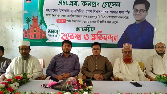 ঢাকা বিশ্ববিদ্যালয় কেন্দ্রীয় ছাত্র সংসদের (ডাকসু) নব নির্বাচিত জিএস এসএম ফরহাদ হোসেনকে রাঙামাটিতে সংবর্ধনা দেওয়া হয়েছে। মঙ্গলবার (০৭ অক্টোবর) সকালে শহরের আল-আমিন ইসলামিয়া ফাজিল (ডিগ্রি) মডেল মাদ্রাসায় এ আয়োজন করা হয়।