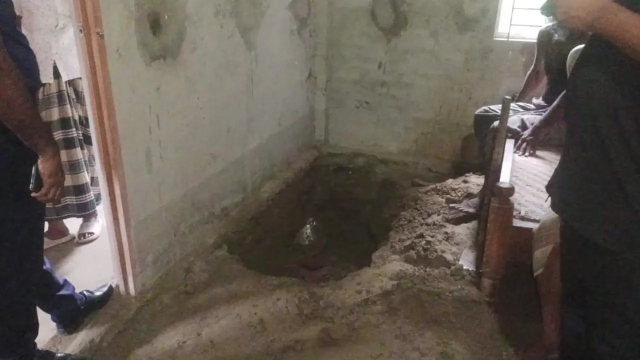 তিনি আরও বলেন, “খাটের ওপরে থাকা সবকিছু ভিজা কেন জানতে চাইলে বলে পানি পড়েছে বিছানায়। পরে ঘরে থাকা ট্রাংকের নিচে বালুমাখা জিনিস দেখে সন্দেহ আরও গভীর হয়। এক পর্যায়ে ট্রাংকের নিচের বালু সরাতেই রাজু বলে, ‘মা-বাবারে পুঁতে রাখছি।’ আমার চিল্লাচিল্লিতে এলাকা মানুষ সবাই আইশা পড়ছে। আইশা তারে সবাই ধরছে। এলাকার মানুষ পুলিশরে খবর দিয়েছে পুলিশ আইশা তারে দরছে।”
