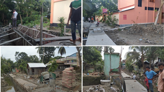 স্থানীয় শম্ভু ঘোষ বলেন, বাপ-দাদার আমল থেকে এখানে খাল দেখে আসছি। এ খালে নৌকা চলতো। বাজারের ব্যবসায়ীরা নৌকা দিয়ে মালামাল এনে বাজারে বিক্রি করতো। পৌর প্রকৌশলী ফিরোজ আহাম্মদ কালবেলাকে বলেন, কোভিড-১৯ প্রকল্প এর আওতায় ৩১ লাখ টাকা ব্যয়ে ৮০ মিটার দৈর্ঘ্য ড্রেন কাম রাস্তা তৈরির কাজ চলমান আছে। আমরা কোনো খাল দখল করে এ নির্মাণ কাজ করিনি। আমরা মূলত খালের পাশ দিয়ে জনসাধারণের চলাচলের সুবিধার্থে এ কাজটি করছি।