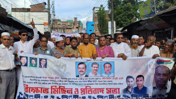 প্রতিবাদ সমাবেশে বিএনপি নেতারা বলেন, গত ১৮ জুলাই জেলা বিএনপির শান্তিপূর্ণ কর্মসূচিতে বিনা উস্কানিতে হামলা করেছিল পুলিশ। ওই হামলায় শতাধিক নেতাকর্মী আহত হয়। অন্যদিকে কৃষকলীগ নেতা সজিবকে কুপিয়ে হত্যা করে ছাত্রলীগ। অথচ সেদিনের ওই ঘটনায় বিএনপির নেতাকর্মীদের আসামি করা হয়েছে। পুলিশ ও আওয়ামী লীগ নেতার করা ওই মিথ্যা মামলায় সম্প্রতি জেলা বিএনপির যুগ্ন আহ্বায়ক হাছিবুর রহমানসহ ২৭ জনকে কারাগারে পাঠিয়েছেন আদালত।