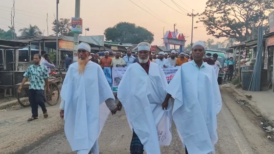 বন বিভাগের অব্যাহত হয়রানি, মামলা-হামলা ও উচ্ছেদ অভিযানের প্রতিবাদে অভিনব কায়দায় বিক্ষোভ করেছেন ময়মনসিংহের ভালুকা উপজেলার উথুরা ইউনিয়নের বাসিন্দারা। কাফনের কাপড় পরে তারা বিক্ষোভ ও মানববন্ধন করেছেন।