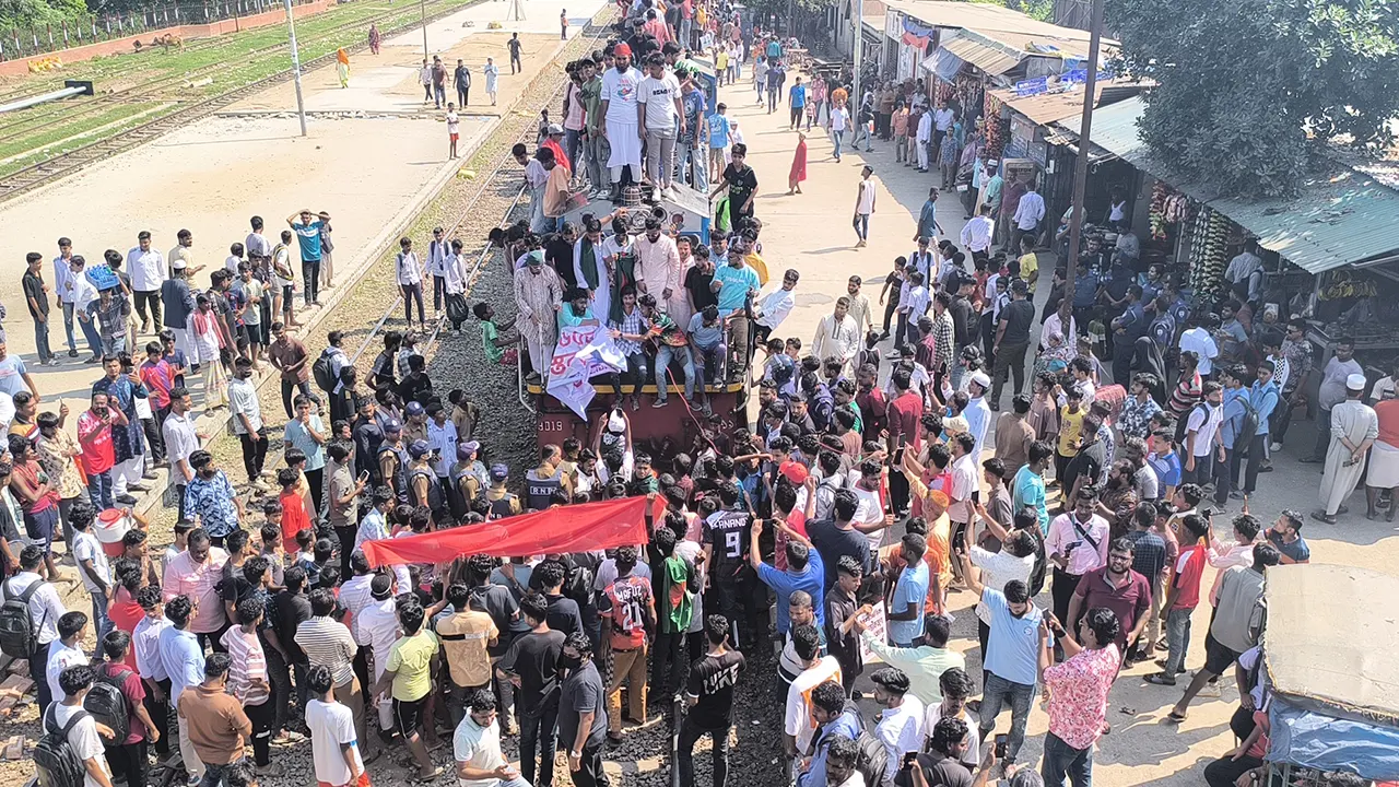 কিশোরগঞ্জের ভৈরবকে জেলা ঘোষণার দাবিতে রেলওয়ে জংশন অবরোধ করেছেন আন্দোলনকরীরা। তারা লাল কাপড় ও ব্যানার হাতে নিয়ে ‘ভৈরবকে জেলা চাই’ স্লোগান দিতে থাকেন। এ সময় বিক্ষোভকারী উপকূল এক্সপ্রেস ট্রেনে মুহুর্মুহু পাথর ছুড়লে এক যাত্রী আহত হয়।