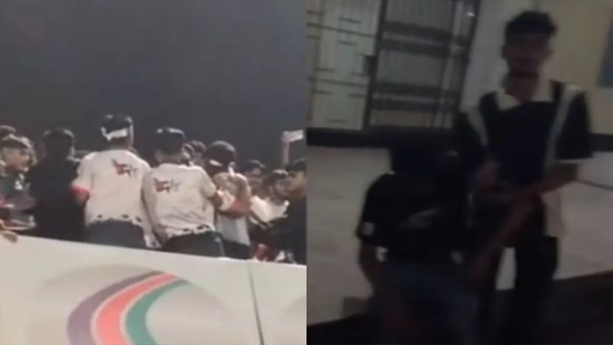 জানা গেছে, ম্যাচ চলাকালে সাকিব আল হাসানের নামে প্ল্যাকার্ড ও জয় বাংলা স্লোগানকে কেন্দ্র করে তর্কের সূত্রে সংঘর্ষ হয়। এ ঘটনায় পুলিশ ঘটনাস্থল থেকে ছয়জনকে আটক করেছে।