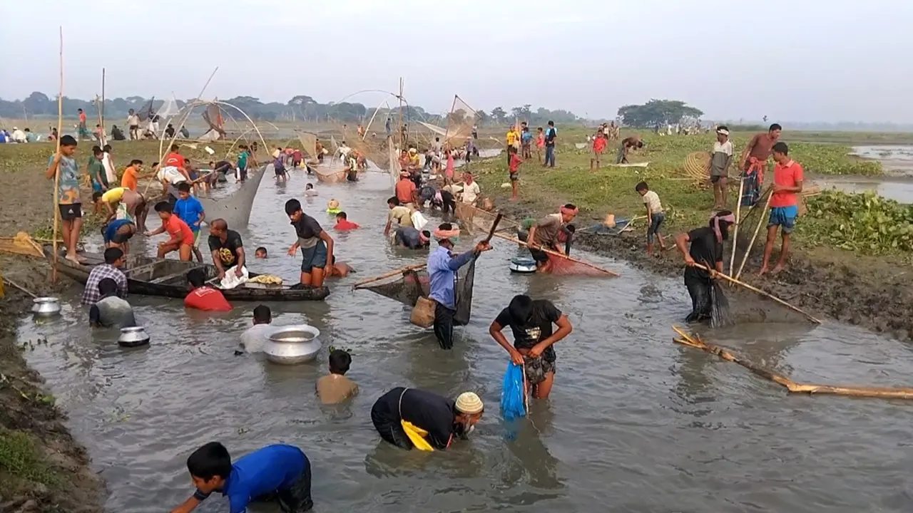 বৃহস্পতিবার (৩০ অক্টোবর) ভোরে নান্দাইল সদর ইউনিয়নের ঐতিহ্যবাহী বলদা বিলে আনন্দগণ পরিবেশে হাজারো মানুষের মাছ ধরার মিলন মেলা ‘হাইত উৎসব’ আয়োজনে পরিণত হয়েছে। ভোরের আলো ফোটার সঙ্গে সঙ্গে বিভিন্ন এলাকা ও আশপাশের হাজারো মানুষজন জড়ো হতে থাকে বলদা বিলের পাশে। কারো হাতে পলো, কারো হাতে জাল- সবার অপেক্ষা মাছ শিকার।