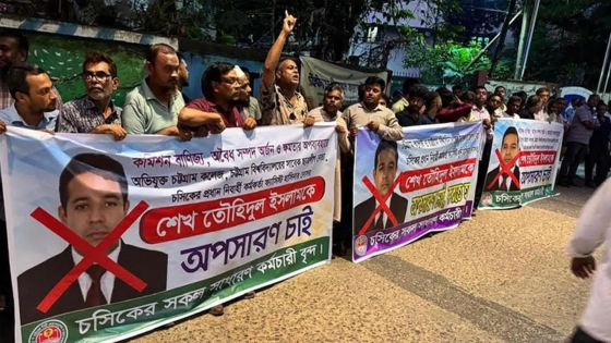 চট্টগ্রাম সিটি করপোরেশনের (চসিক) প্রধান নির্বাহী কর্মকর্তা (সিইও) শেখ মুহাম্মদ তৌহিদুল ইসলামের অপসারণের দাবিতে করপোরেশনের প্রধান ফটকে তালা দিয়ে বিক্ষোভ মিছিল ও সমাবেশ করেছেন কর্মকর্তা-কর্মচারীরা। পরে প্রায় ৪ ঘণ্টা পর মেয়রের আশ্বাসে তারা ফটকের গেট খুলে দেন।