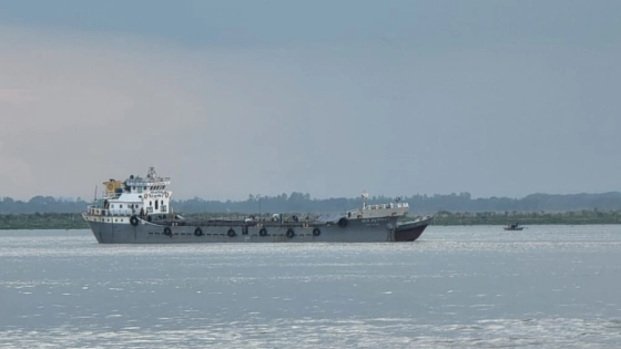 বৃহস্পতিবার (৩০ অক্টোবর) বিকেলে সরেজমিনে দেখা যায়, নদীর এ পাড় থেকে প্রায় দুই কিলোমিটার দূরে লম্বা ধু-ধু বালুচর। বালুচরের পাশেই দেখা যায় আটকে আছে একটি জাহাজ।