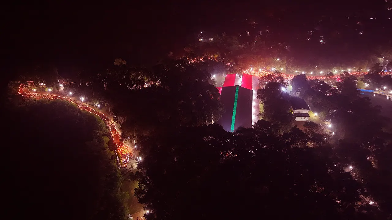 পাহাড়ের আঁকাবাঁকা প্রায় দুই কিলোমিটারেরও বেশি উঁচুনিচু ঢালু পথ পাড়ি দিয়ে এভাবেই আলোক শোভাযাত্রা করে গন্তব্য পাড়ি দিলেন হাজারো খৃস্ট ভক্ত। মা মারিয়ার আশীর্বাদপ্রাপ্ত স্থান শেরপুরের নালিতাবাড়ী উপজেলার গারো পাহাড়ের পাদদেশে অবস্থিত ‘বারোমারি সাধু লিওর খ্রিস্টধর্মপল্লি’তে ছিল এ বছরের আয়োজন।