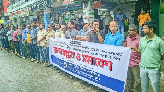 শনিবার (০১ নভেম্বর) দুপুরে রংপুর প্রেস ক্লাব চত্বরে রংপুর সাংবাদিক ইউনিয়নের (আরপিইউজে) উদ্যোগে আয়োজিত মানববন্ধন ও সমাবেশে এ ঘোষণা দেন সাংবাদিক নেতারা।