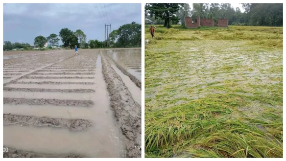আব্দুল হালিম, খোকন, মামুন ও ফরিদুল ইসলাম জানান, ধান চাষে এমনিতেই লোকসান, তারপর ধান পোক্ত হয়েছে এর মধ্যে পড়ে গেলো। ফলন ১০০% কমে যাবে। এতে আমাদের ব্যাপক ক্ষতি। আগাম শীতকালীন সবজির খেতও পানির নিচে তলিয়ে গেছে।
