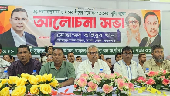 ঢাকা জেলা যুবদলের সাধারণ সম্পাদক মোহাম্মদ আইয়ুব খান বলেছেন, দেশের অন্যতম বৃহৎ রাজনৈতিক দল বাংলাদেশ জাতীয়তাবাদী দল (বিএনপি)। দলের প্রতিটি সিদ্ধান্তই নেওয়া হয় দেশ ও দলের বৃহত্তর স্বার্থকে সামনে রেখে। দলের সিদ্ধান্তের প্রতি সম্মান দেখিয়ে সব নেতাকর্মীকে ঐক্যবদ্ধভাবে মাঠে কাজ করতে হবে।
