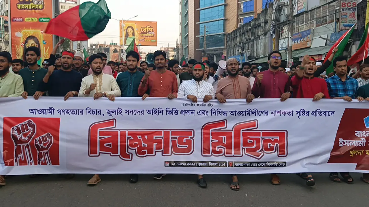 খুলনার পাওয়ার হাউস মোড় ও বাইপাস সড়কে ঝটিকা মিছিল করেছে কার্যক্রম নিষিদ্ধ থাকা আওয়ামী লীগ। মঙ্গলবার (১১ নভেম্বর) রাতে নগরীর দুই স্থানে মিছিলটি বের করা হয়। এ ঘটনায় পুলিশ তিনজনকে আটক করেছে।