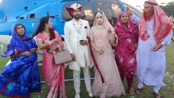 বিয়ের দিন শুক্রবার (১৪ নভেম্বর) সকাল থেকেই এলাকায় গুঞ্জন ওঠে রুহিতারপার ডিএম উচ্চ বিদ্যালয় মাঠে অবতরণ করবে একটি হেলিকপ্টার। ঠিক সময়মতো হেলিকপ্টারটি মাঠে নামতেই উপস্থিত শত শত মানুষের মধ্যে দেখা যায় অন্যরকম উচ্ছ্বাস। নবদম্পতিকে আনতে এমন আয়োজন করায় এলাকাবাসী বিস্ময় ও আনন্দ প্রকাশ করেন।