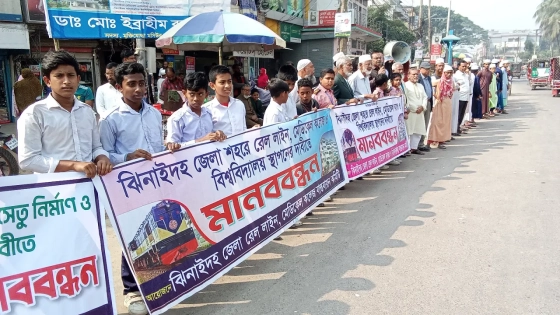 মানবন্ধনে বক্তারা বলেন, পার্শ্ববর্তী মাগুরা, কুষ্টিয়া ও চুয়াডাঙ্গায় রেল সংযোগ থাকলেও ঝিনাইদহ জেলা শহরে কোনো রেললাইন নেই। জেলা সদরে এখনো মেডিকেল কলেজ স্থাপিত হয়নি, আর উচ্চশিক্ষার জন্য সরকারি কৃষি বিশ্ববিদ্যালয় প্রতিষ্ঠার দাবি দীর্ঘদিনের। এ ছাড়া সকল সড়ক ও নবগঙ্গা নদী সংস্কার এবং ঢাকার সঙ্গে যোগাযোগ ব্যবস্থা সহজ করতে দৌলতদিয়া-পাটুরিয়ায় পদ্মা সেতু নির্মাণের জোর দাবি জানানো হয়।
