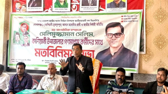 গোপালগঞ্জ-১ (কাশিয়ানী-মুকসুদপুর) আসনের বিএনপি মনোনীত প্রার্থী ও জাতীয় নির্বাহী কমিটির সহ-সাংগঠনিক সম্পাদক সেলিমুজ্জামান সেলিম বলেছেন, দলের ভাবমূর্তি উজ্জ্বল করতে সবাইকে সুসংগঠিত থাকা জরুরি। দল যাকে উপযুক্ত মনে করেছে, তাকেই মনোনয়ন দিয়েছে। আমরা সবাই ঐক্যবদ্ধভাবে ধানের শীষের বিজয় নিশ্চিত করব।