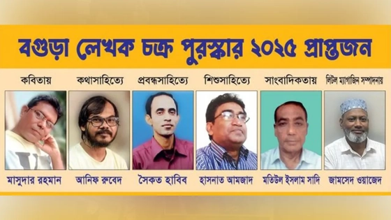 এবার যারা বগুড়া লেখক চক্র পুরস্কার পাচ্ছেন তারা হলেন— কবিতায় মাসুদার রহমান, কথাসাহিত্যে আনিফ রুবেদ, প্রবন্ধে সৈকত হাবিব, লিটল ম্যাগাজিন সম্পাদনায় ‘জলছবি’ সম্পাদক জামসেদ ওয়াজেদ, সাংবাদিকতায় মতিউল ইসলাম সাদি, শিশুসাহিত্যে হাসনাত আমজাদ প্রধান।