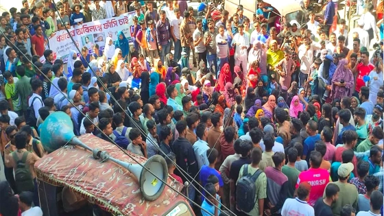 সংক্ষিপ্ত সমাবেশ শেষে তারা মিছিল নিয়ে শহরের প্রধান সড়ক অবরোধ করে বিক্ষোভ করে তারা জড়িত সকল আসামিকে গ্রেপ্তারে থানা পুলিশকে ২৪ ঘণ্টার আলটিমেটাম দেন। তা না হলে আরও কঠোর কর্মসূচির হুঁশিয়ারি দেয়। এ সময় প্রায় এক ঘণ্টা যান চলাচল বন্ধ হয়ে যানজটের সৃষ্টি হয়। পরে সদর থানার ওসি আব্দুস সালাম ঘটনাস্থলে গিয়ে আগামী ২৪ ঘণ্টার মধ্যে অভিযুক্তদের গ্রেপ্তারের আশ্বাস দিলে অবরোধ তুলে নেন বিক্ষোভকারীরা।