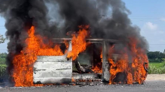 রোববার (১৭ সেপ্টেম্বর) সকাল সাড়ে ১০টার দিকে নাটোর-বগুড়া মহাসড়কের ডালসড়ক এলাকায় এ ঘটনা ঘটে। পরে ফায়ার সার্ভিসের কর্মীরা এসে আগুন নেভান।