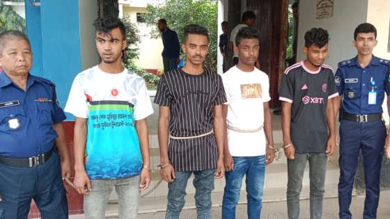 গ্রেপ্তাররা হলেন মঘাদিয়া ইউনিয়নের ২নং ওয়ার্ডের গজারিয়া এলাকার এতিম উল্লাহ হাজী বাড়ির মৃত মোশারফ হোসেনের ছেলে এমরান হোসেন বাদশাহ প্রকাশ শুভ (২০), মুরাদ আলী মিয়া বাড়ির ওসমান গণির ছেলে ও মঘাদিয়া ইউনিয়ন ছাত্রলীগে সহসম্পাদক সাজ্জাদ হোসেন সাগর (২১), মহসিন আলী মেম্বার বাড়ির মো. দুদু মিয়ার ছেলে ইউনিয়ন ছাত্রলীগের গণশিক্ষাবিষয়ক সম্পাদক মো. শামছুদ্দিন প্রকাশ সালমান (২০), নসরত আলী হাজি বাড়ির নুজরুল ইসলামের ছেলে ও ইউনিয়ন ছাত্রলীগের সহসম্পাদক রিফাত হোসেন (২০)। আসামিদের মধ্যে এতিম উল্ল্যাহ হাজী বাড়ির ওমর ফারুকের পুত্র মো. সবুজ (২৩) পলাতক রয়েছে।