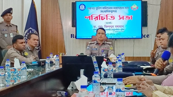 রাজশাহী মেট্রোপলিটন পুলিশের (আরএমপি) নতুন কমিশনার ড. মো. জিল্লুর রহমান বলেছেন, বাংলাদেশের অন্যান্য ডিভিশনাল শহরের মতো রাজশাহী শহরেও বিভিন্ন চ্যালেঞ্জ বিরাজ করছে। বিশেষ করে ট্রাফিক ম্যানেজমেন্ট, মাদক নিয়ন্ত্রণ, সিসিটিভি স্থাপনসহ অন্যান্য নিরাপত্তা বিষয়। তিনি স্টেকহোল্ডারদের সার্বিক সহযোগিতা নিয়ে রাজশাহীকে একটি নিরাপদ শহর হিসেবে গড়ে তুলতে চান।