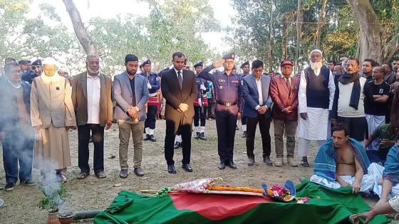 রংপুরের তারাগঞ্জে নিজ বাড়িতে নৃশংস হত্যাকাণ্ডের শিকার বীর মুক্তিযোদ্ধা যোগেশ চন্দ্র রায়কে রাষ্ট্রীয় সম্মানে শেষ বিদায় জানানো হয়েছে। এ সময় স্বজন ও এলাকাবাসীর কান্নায় ভারী হয়ে ওঠে পুরো এলাকা।