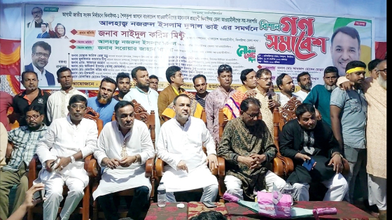 আসন্ন দ্বাদশ জাতীয় সংসদ নির্বাচনকে সামনে রেখে নির্বাচনী গণসংযোগ ও গণসমাবেশ করেছেন ঝিনাইদহ-১ আসনের নৌকার মনোনয়নপ্রত্যাশী, ঝিনাইদহ জেলা আওয়ামী লীগের সহসভাপতি, বিশ্বাস বিল্ডার্স ও দৈনিক কালবেলা মিডিয়া লিমিটেডের ব্যবস্থাপনা পরিচালক আলহাজ নজরুল ইসলাম দুলাল।