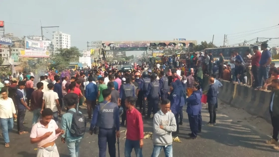 নারায়ণগঞ্জের সিদ্ধিরগঞ্জে ঢাকা-চট্টগ্রাম মহাসড়ক অবরোধ করেছে একটি পোশাক কারখানার শ্রমিকরা। এতে মহাসড়কের দুপাশে তীব্র যানজটের সৃষ্টি হয়। ফলে চরম ভোগান্তিতে পড়েন যাত্রীরা।