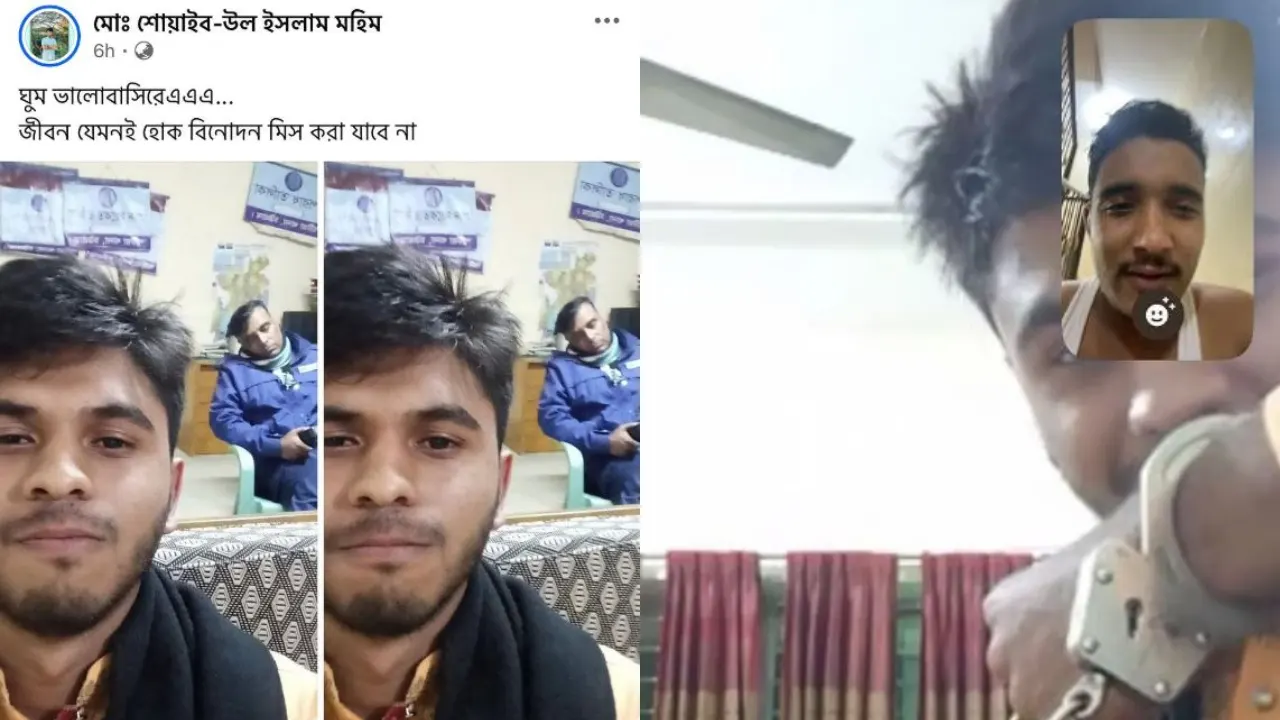 ‘ঘুম ভালোবাসিরে এএএ...। জীবন যেমনই হোক বিনোদন মিস করা যাবে না।’ কথাগুলো পটিয়া থানার হেফাজতে থাকা গ্রেপ্তার আসামি নিষিদ্ধ ঘোষিত ছাত্রলীগ নেতা মো. শোয়াইব-উল ইসলাম মহিমের (২১)। গ্রেপ্তারের পর চট্টগ্রামের পটিয়া থানা থেকে সামাজিক যোগাযোগমাধ্যম ফেসবুকে তিনি এ পোস্ট করেন।
