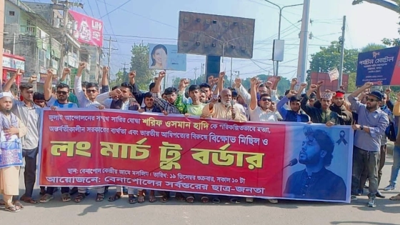 ইনকিলাব মঞ্চের মুখপাত্র শরিফ ওসমান হাদির মৃত্যুতে বেনাপোলে লংমার্চ টু বর্ডার ও অবস্থান কর্মসূচি পালন করেছে সর্বস্তরের ছাত্র জনতা।