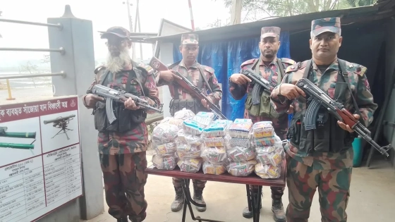 রোববার (২১ ডিসেম্বর) সাতক্ষীরা ব্যাটালিয়নের (৩৩ বিজিবি) অধিনায়ক লেফটেন্যান্ট কর্নেল কাজী আশিকুর রহমান এক সংবাদ বিজ্ঞপ্তির মাধ্যমে বিষয়টি নিশ্চিত করেছেন। তিনি জানান, ব্যাটালিয়নের অধীনে তলুইগাছা, মাদরা, হিজলদী, সুলতানপুর ও চান্দুরিয়া বিওপি, পাশাপাশি ব্যাটালিয়ন সদর ও বাঁকাল চেকপোস্ট এলাকায় একযোগে বিশেষ অভিযান পরিচালনা করা হয়। অভিযানে ৪ দশমিক ২৫ কেজি আইস (মেথামফেটামিন), ৪০ বোতল উইনসেরেক্স সিরাপ, ১০ বোতল মদসহ বিপুল পরিমাণ ভারতীয় চোরাচালানি পণ্য জব্দ করা হয়।