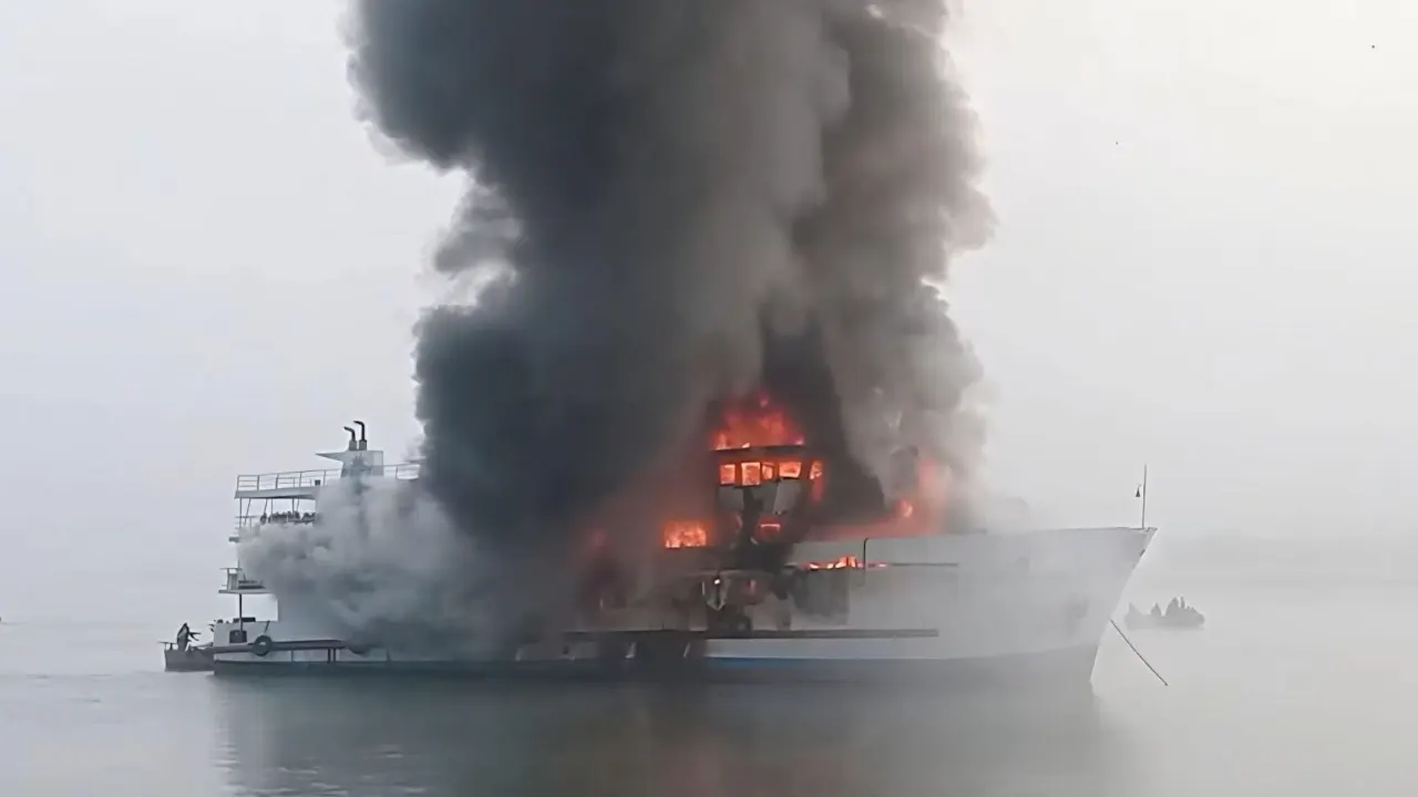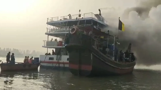 প্রত্যক্ষদর্শীরা জানান, ঘাটে নোঙর করার কিছুক্ষণ পর জাহাজের ভেতর থেকে ধোঁয়া উঠতে দেখা যায়। অল্প সময়ের মধ্যেই আগুন ছড়িয়ে পড়ে এবং জাহাজে আগুনের লেলিহান শিখা দেখা যায়।