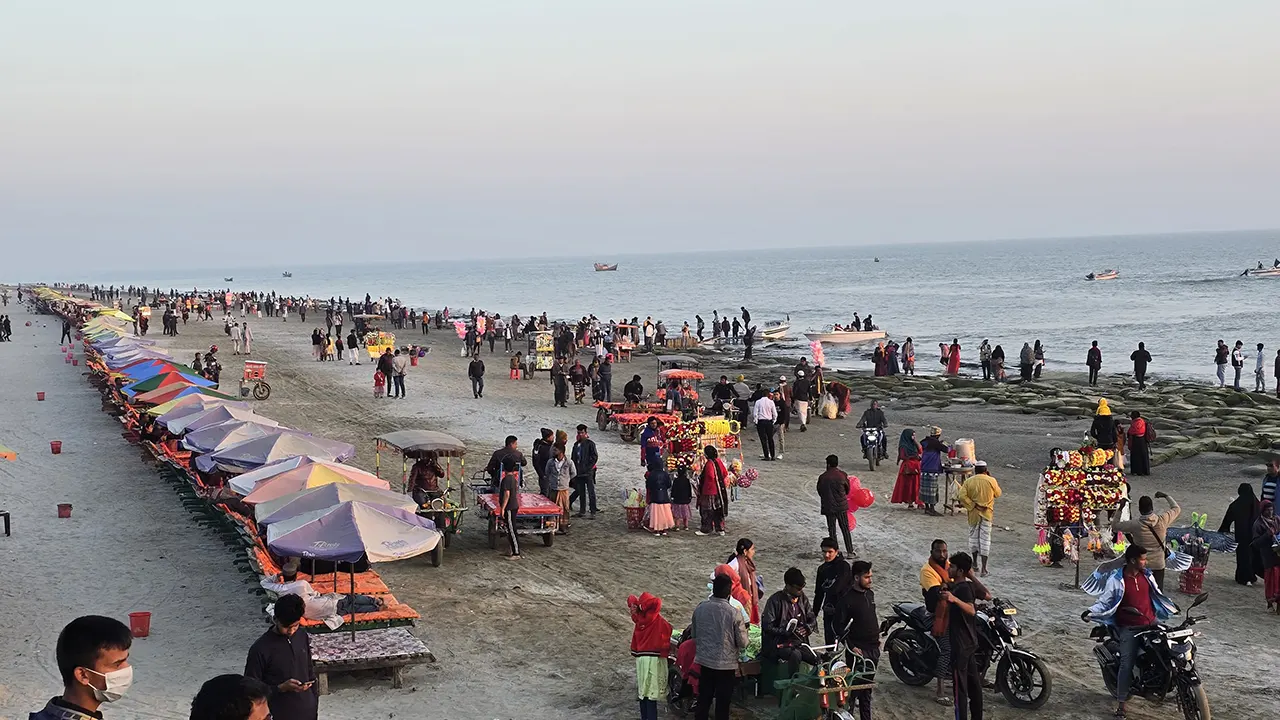 বছরের শেষ দিনের সূর্যাস্ত উপভোগ করতে দেশের বিভিন্ন প্রান্ত থেকে হাজারো পর্যটকের সমাগম হয়েছে সাগরকন্যা কুয়াকাটায়। অনেকেই পরিবার ও বন্ধুদের সঙ্গে সৈকতে বসে বছরের শেষ বিকেল কাটান। পর্যটকদের আকর্ষণের মূল কেন্দ্র ছিল কুয়াকাটার অনন্য সূর্যাস্ত।