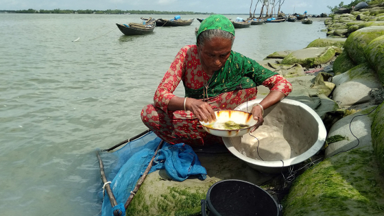 সম্প্রতি উপকূলীয় শ্যামনগর উপজেলার বিভিন্ন এলাকায় সরেজমিনে গিয়ে দেখা যায়, নদীতে অনেক নারী-পুরুষকে পিঠে দড়ি বেঁধে জাল টানছেন। নদী থেকে উজানে ভেসে আসা বাগদা ও গলদার রেণু পোনা ধরার জন্য সকাল থেকে সন্ধ্যা পর্যন্ত অসংখ্য নারী-পুরুষ নেট দিয়ে তৈরি করা একধরনের জাল পেতে অপেক্ষা করছেন। কেউ নদী তীরের এক প্রান্ত থেকে আরেক প্রান্ত পর্যন্ত জাল টেনেই চলেছেন। কেউ আবার নৌকায় বসে মাঝনদীতে জাল পেতেছেন। জালে আটকে পড়া ক্ষুদ্রাকৃতির গলদা ও বাগদা চিংড়ির রেণু পোনা নিয়ে নিবিড় পর্যবেক্ষণ করে নদীর চরে রাখা গামলাতে উঠিয়ে রাখছেন।