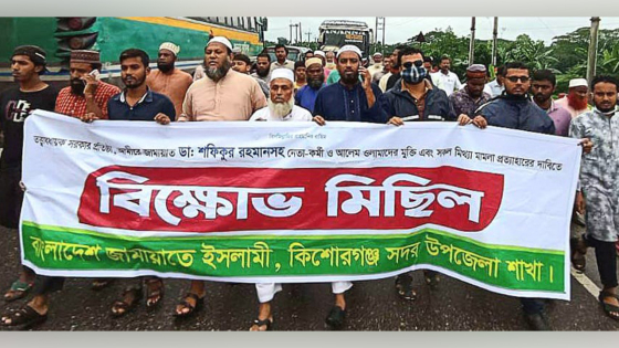 দলীয় আমির ডা. শফিকুর রহমানসহ আলেম-ওলামাদের মুক্তি, মিথ্যা মামলা প্রত্যাহার এবং তত্ত্বাবধায়ক সরকার প্রতিষ্ঠার দাবিতে কিশোরগঞ্জ সদর উপজেলায় বিক্ষোভ মিছিল ও সমাবেশ করেছে বাংলাদেশ জামায়াতে ইসলামী।