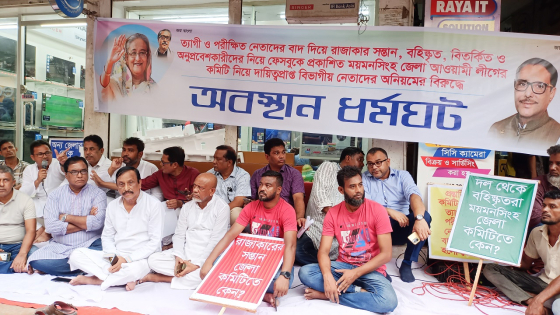 ময়মনসিংহ জেলা আওয়ামী লীগের পূর্ণাঙ্গ কমিটি প্রকাশ করা হয় ২৫ সেপ্টেম্বর। এক সপ্তাহ পর থেকে সেই কমিটি বাতিলের দাবিতে আন্দোলনে নেমেছেন পদবঞ্চিতরা। সম্প্রতি মানববন্ধন ও অবস্থান কর্মসূচি পালন করেছেন তারা। আন্দোলনকারীদের অভিযোগ, জেলা থেকে পাঠানো প্রস্তাবিত তালিকা থেকে ত্যাগী নেতাদের বাদ দিয়ে কেন্দ্রীয় দায়িত্বশীল নেতারা সুবিধা নিয়ে বিতর্কিতদের অন্তর্ভুক্ত করেছেন।