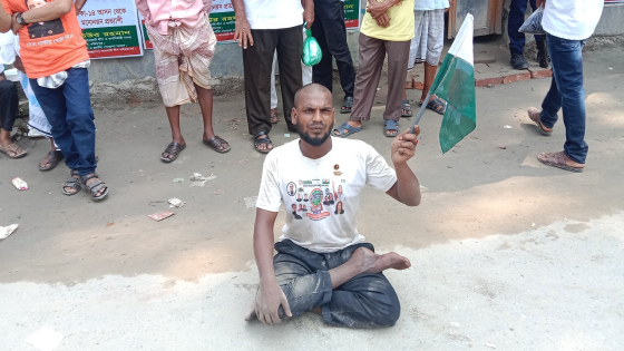 মঙ্গলবার (১০ অক্টোবর) সকালে ফরিদপুরের ভাঙ্গায় জনসভাস্থলে প্রতিবন্ধী সাগর আহমেদের সঙ্গে কথা হয় কালবেলা প্রতিবেদকের। সাগর জানায়, তিনি ঢাকা থেকে ফরিদপুরের সমাবেশে যোগ দিয়েছেন।