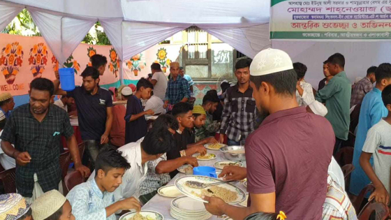 শরীয়তপুরে ছেলে ব্যারিস্টার হওয়ার খুশিতে ২ হাজার সাধারণ গ্রামবাসীকে বিরিয়ানি-পায়েস খাওয়ালেন তার বাবা-মা।