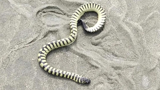 কক্সবাজারের উখিয়ার ইনানী সমুদ্রসৈকতে জোয়ারের পানিতে ভেসে এলো সামুদ্রিক বিষধর সাপ ‘ব্যান্ডেড সি ক্রেইট’। শুক্রবার (১৩ অক্টোবর) বিকেলের দিকে সাপটি ভেসে আসে। এরপর এটি দেখতে ভিড় করেন পর্যটকসহ শত শত দর্শনার্থী। এ সময় পর্যটকদের সাপটির ছবি ও ভিডিও করতে দেখা গেছে।