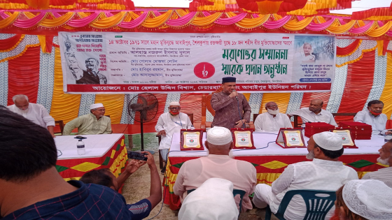 আলোচনা সভা শেষে শহীদদের আত্মার মাগফিরাত কামনায় দোয়া মাহফিল ও মুক্তিযোদ্ধাদের সম্মাননা স্মারক প্রদান করা হয়।