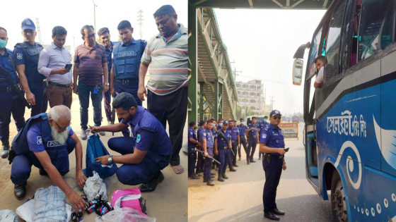 সরেজমিনে দেখা যায়, সকাল থেকে শুরু হওয়া এই চেকপোস্টে বাস, মাইক্রোবাসসহ সব প্রকার পরিবহন থামিয়ে তল্লাশি করা হচ্ছে।